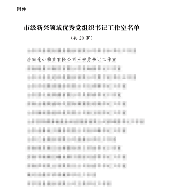 近日,濟(jì)南連心物業(yè)有限公司王宏勇書(shū)記工作室被中共濟(jì)南市委非公有制經(jīng)濟(jì)組織和社會(huì)組織工作委員會(huì)授予“市級(jí)新興領(lǐng)域優(yōu)秀黨組織書(shū)記工作室”榮譽(yù)稱(chēng)號(hào)。