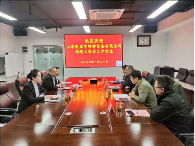 2026年1月20日上午,山東新成豐特種設(shè)備有限公司董事長(zhǎng)劉立清、副總經(jīng)理張東坡、銷售經(jīng)理張振群等到濟(jì)南連心物業(yè)進(jìn)行工作交流。連心物業(yè)黨支部書記、董事長(zhǎng)王宏勇、黨支部副書記、總經(jīng)理曹立、辦公室主任孫耀先等參加工作交流活動(dòng)。