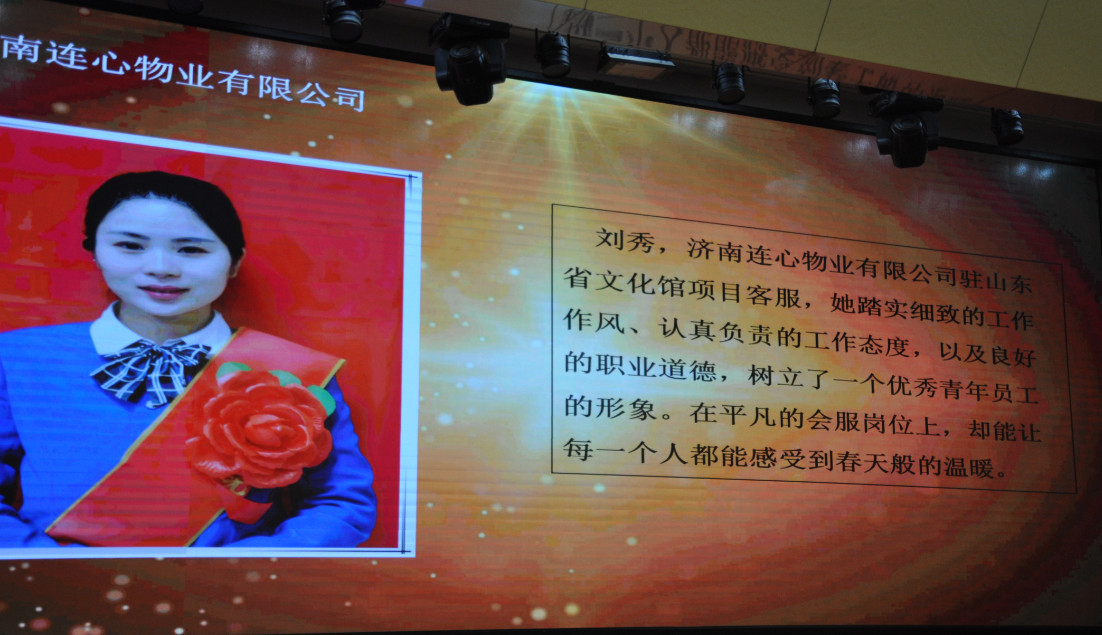 最激動(dòng)人心的時(shí)刻就是濟南市工商聯(lián)主席李景全、濟南市商務(wù)局副局長(cháng)張娟、濟南市總工會(huì )權益保障部部長(cháng)周延、濟南市住房保障和房產(chǎn)管理局物業(yè)處副處長(cháng)閆亮、濟南市歷下區總工會(huì )副主席王先懷、濟南市工商聯(lián)宣傳調研處處長(cháng)張攀峰、濟南市商務(wù)局商貿服務(wù)管理處處長(cháng)張鶴龍、濟南市天橋區住房保障與房產(chǎn)管理局科長(cháng)王海、濟南陽(yáng)光大姐有限公司副總經(jīng)理高玉芝等親自登臺為連心物業(yè)2018年度先優(yōu)者頒獎。一本本鮮紅的榮譽(yù)證書(shū)、一束束美麗的鮮花以及獎勵給十年員工的44臺55寸彩電是對他們多年來(lái)工作的認可,是對他們辛勤付出的褒獎,這是公司繼2014年獎勵25臺55寸大彩電、2016年獎勵23臺55寸大彩電后第三次獎勵工作連續滿(mǎn)十年員工,這也將繼續激勵員工在自己的崗位上不斷奉獻自己、提升自己,為公司更好的發(fā)展而努力。