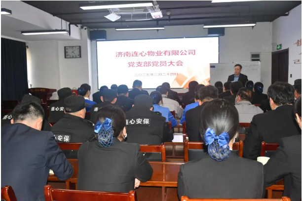 2025年2月24日下午,濟南連心物業(yè)有限公司黨支部在1701會(huì )議室召開(kāi)第一季度黨員大會(huì ),公司黨員41人參加本次大會(huì )、入黨積極分子及遞交入黨申請書(shū)人員列席本次大會(huì )。